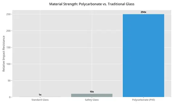 Figure 1: Comparison of impact resistance between PVE polycarbonate and traditional glass materials.